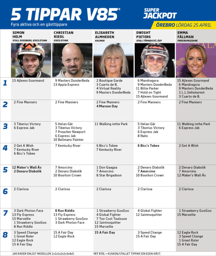 5 Tippar V85® lördag Örebro 25 april