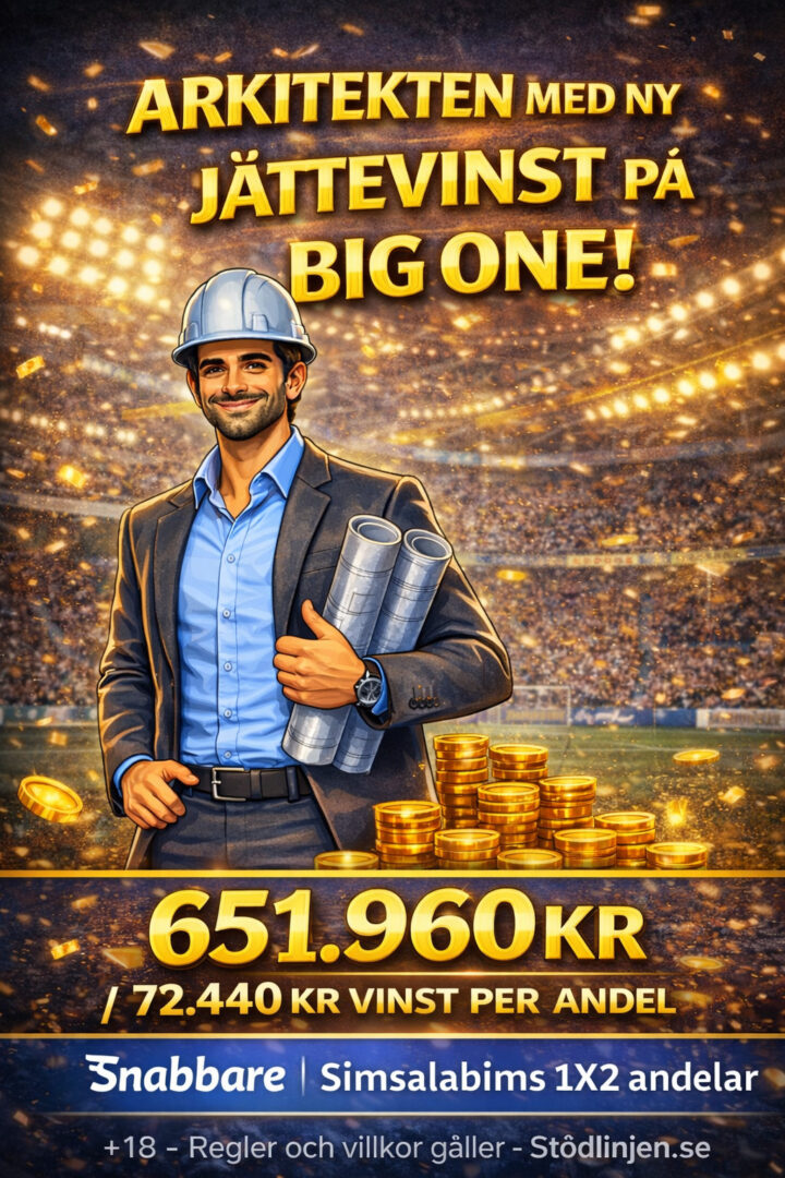 Arkitekten Simsalabims hetaste tippare med tre jättevinster senaste tre veckorna. Nu på söndag kvällen satt 12an klockrent och andelsköparna fick dela på 651.960kr. Hela 72.000kr per andel vinst!