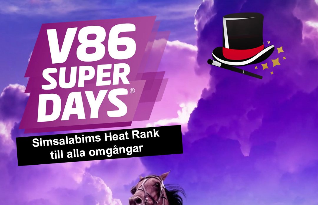 Superdays startar onsdag Vi har några fullständigt magiska travdagar framför oss och inte mindre än sex V86 omgångar samt två V75 omgångar framför oss på 8 dagar. Här på Simsalabim.se kommer vi bjuda på vår nya unika och exklusiva Heat Rank till alla V86 omgångarna. Den bygger på massor med variablar där en av dem är vår egen rank från …